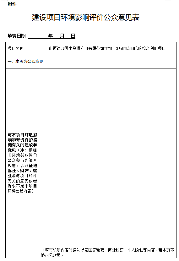 山西錦邦再生資源利用有限公司年加工3萬噸廢舊輪胎綜合利用項目 環(huán)境影響評價公眾參與第一次信息公示