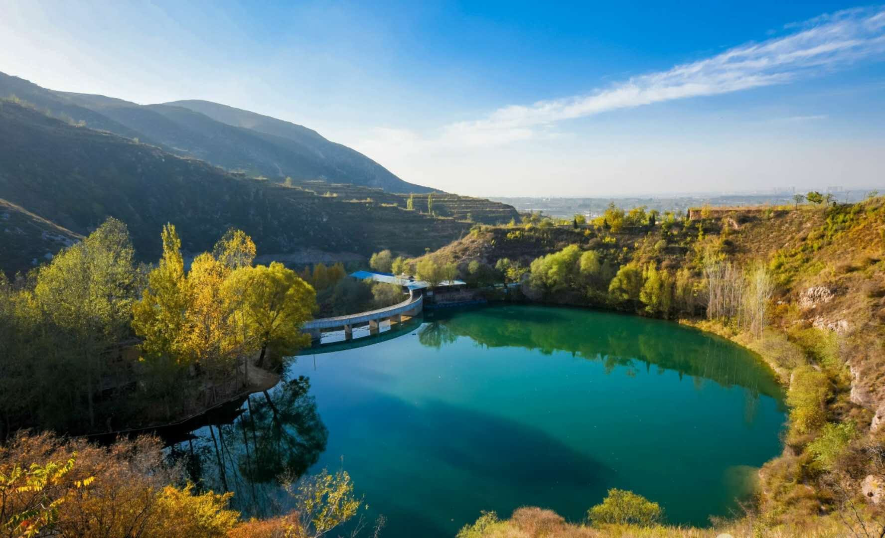 景明詩(shī)經(jīng)山水旅游區(qū),位于縣城東南10公里的景明村、南林交村一帶,地處曲沃、聞喜、絳縣三縣交匯的紫金山麓。沃泉水經(jīng)青玉峽谷至白石山崖,急流直下,出景明山而成瀑布,常年不斷,清澈可飲?!端?jīng)注》描寫它“青巖若點(diǎn)黛,素湍如委練”。沃泉水系在峽谷中攔水成壩,高峽出平湖,環(huán)湖青山環(huán)抱、翠竹成林,在古代即為曲沃十景之一。主要景點(diǎn)有龍巖園、牡丹園、水上樂(lè)園、詩(shī)經(jīng)故里、千年銀杏樹、南林交龍泉寺等。