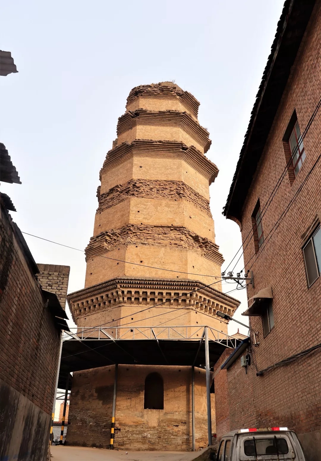 感應(yīng)寺磚塔形制為遼金時期北方地區(qū)盛行的密檐塔式,塔體敦實厚重,體現(xiàn)了北方民族勇健豪放的氣質(zhì)。